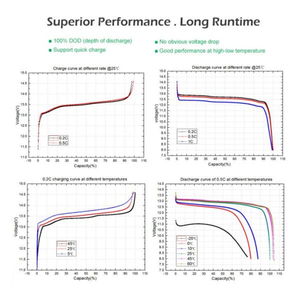 | Discharge Temperature | -40℃ - 80℃ @60 ± 25% Relative Humidity |